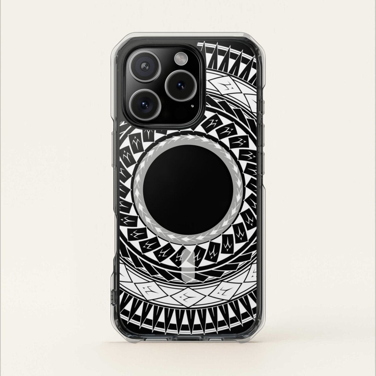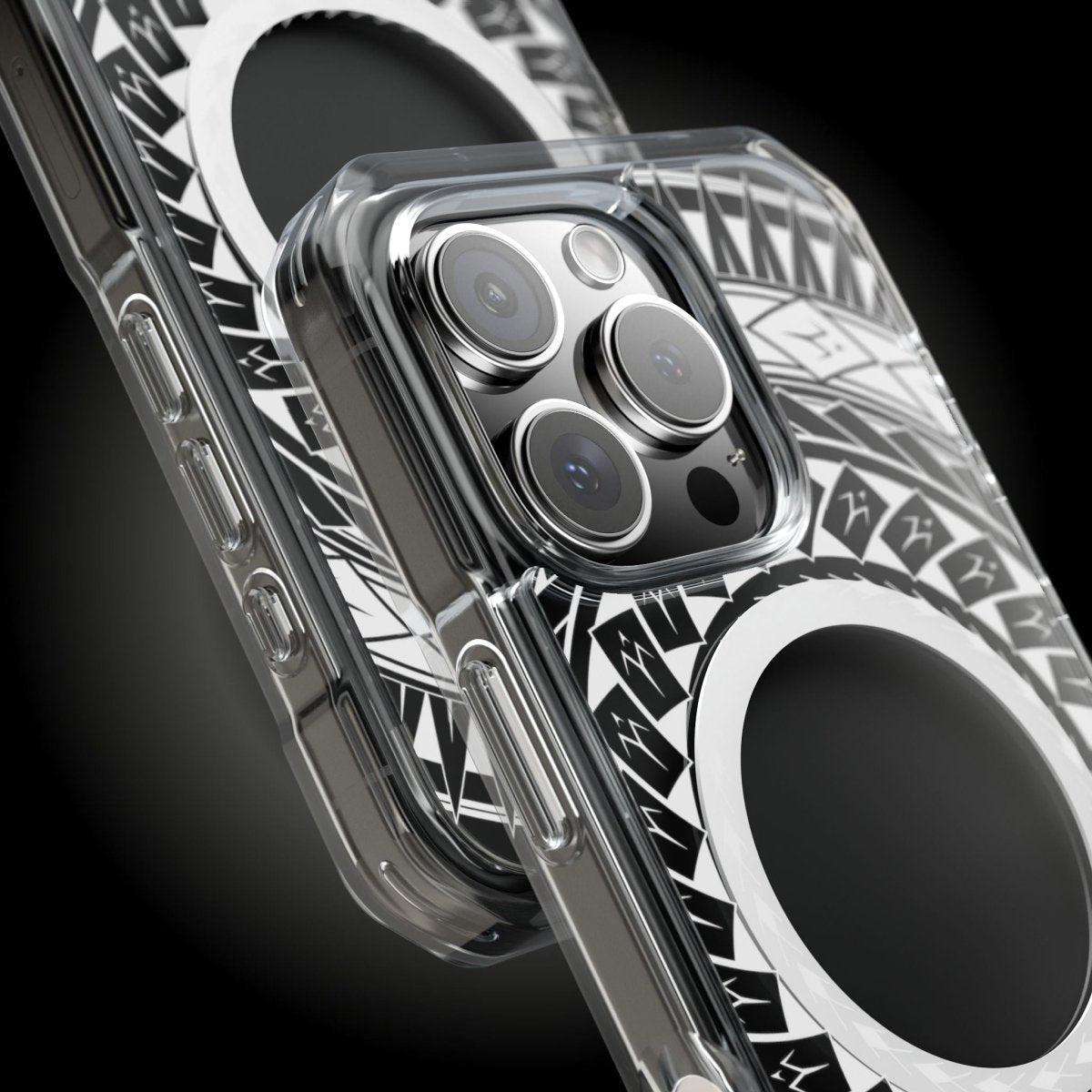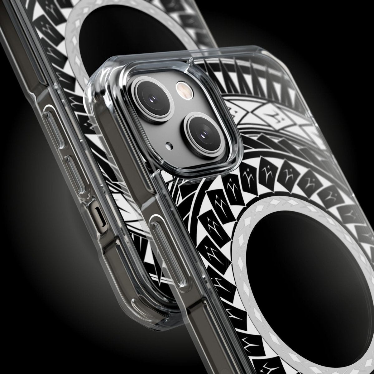 Translucent Pasifika motifs float above your phone colour for a look that’s uniquely you.